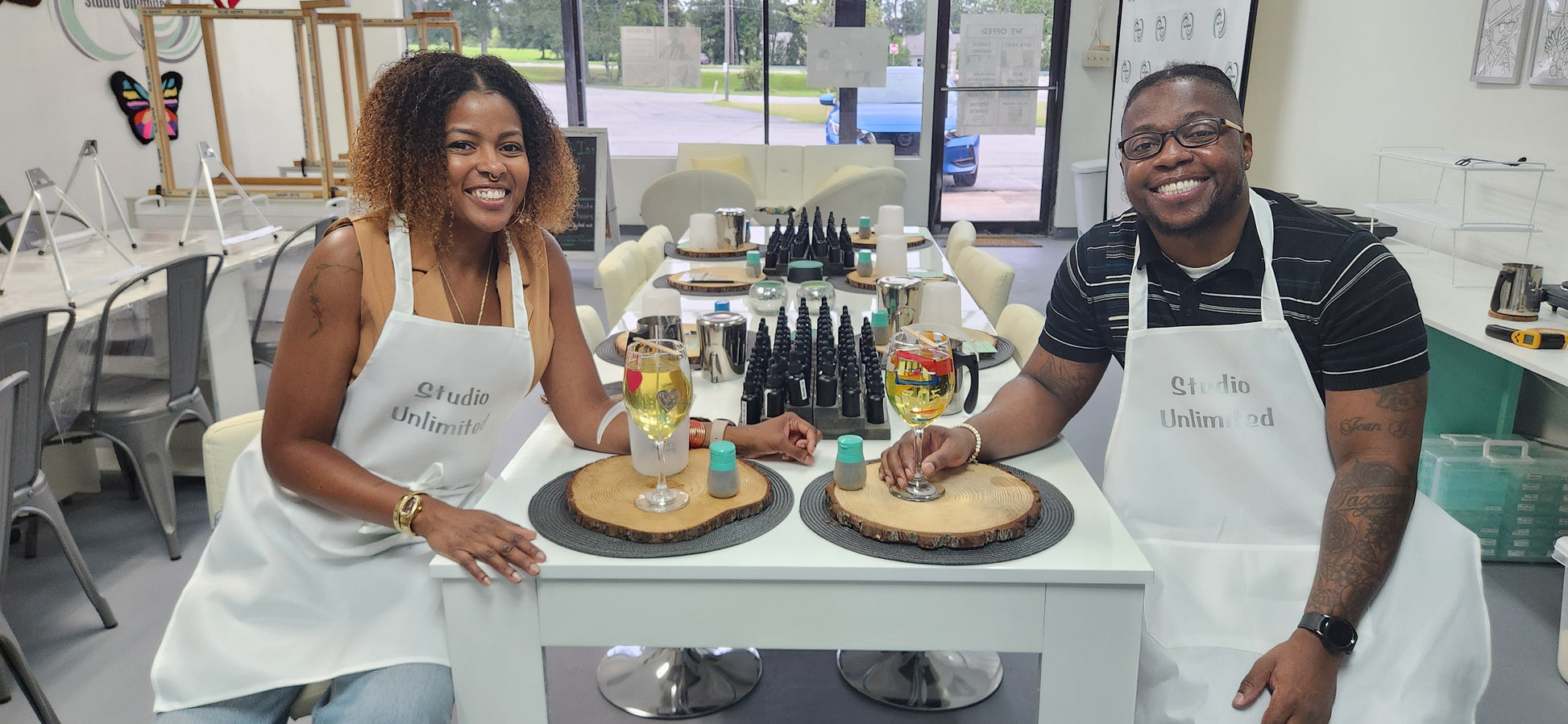 In this experience you will have the chance to free-hand paint a design on a wine glass. As your paint dries you will make a candle of your choice to put into your wine glass.